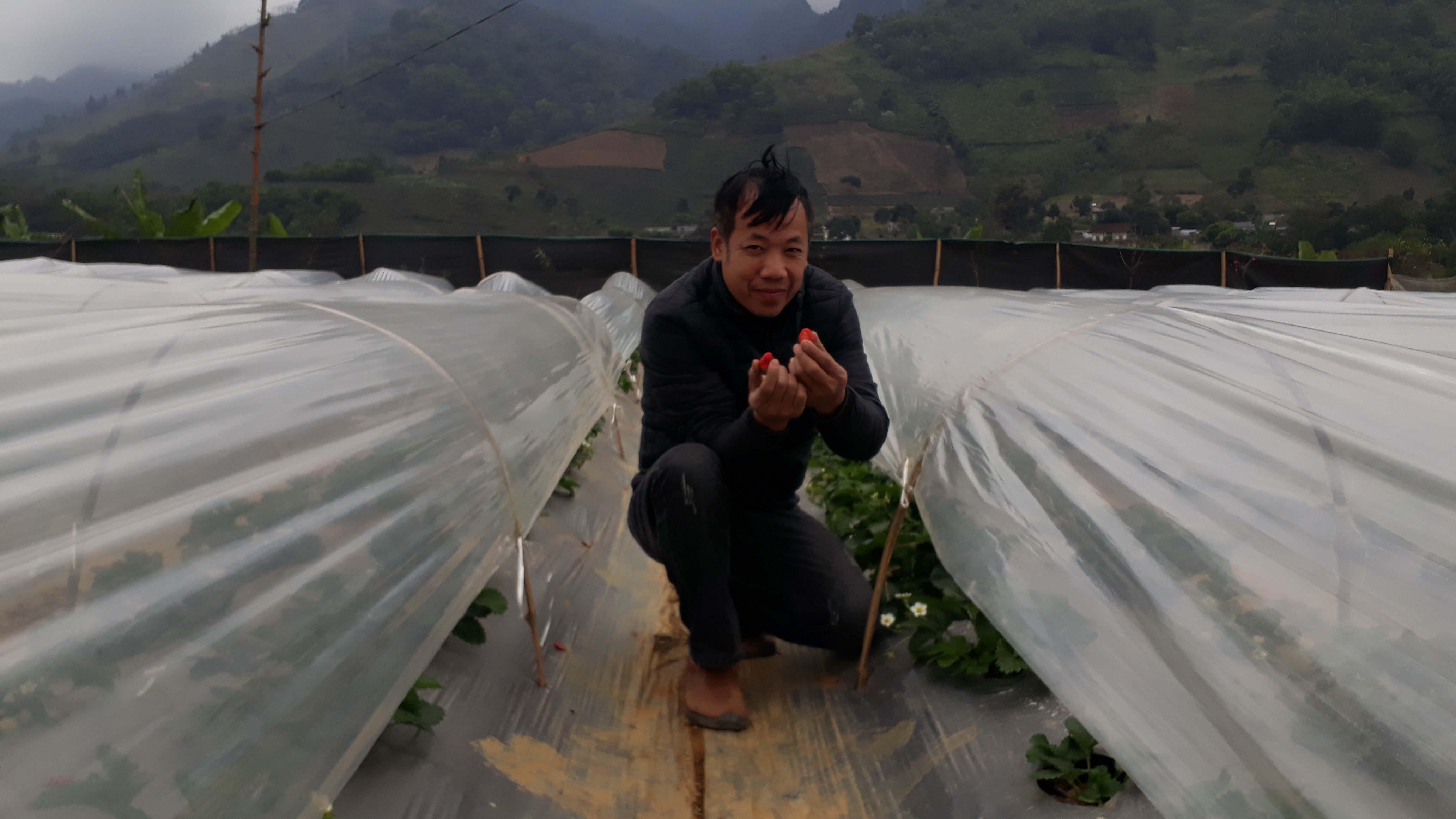 Là người quen biết anh đã dăm năm nay, kể từ ngày anh mang sản phẩm mật ong về tham gia gian hàng nông sản của tỉnh Yên Bái giới thiệu với người tiêu dùng Thủ đô, hơn nữa anh tỏ ra bất ngờ khi thấy chúng tôi không quản thời tiết giá lạnh đột ngột bao trùm toàn miền Bắc vào những ngày cận Tết lặn lội tới tận nơi xem vườn dâu tây của mình, nên sau này khi tôi dò hỏi anh mới bật mí: Trước Tết nửa tháng thu bói lác đác với sản lượng nhỏ, sau Tết thu đại trà hơn có ngày cao nhất lên đến 20 triệu; đến nay (20/2) tổng thu đã đủ thu hồi vốn.