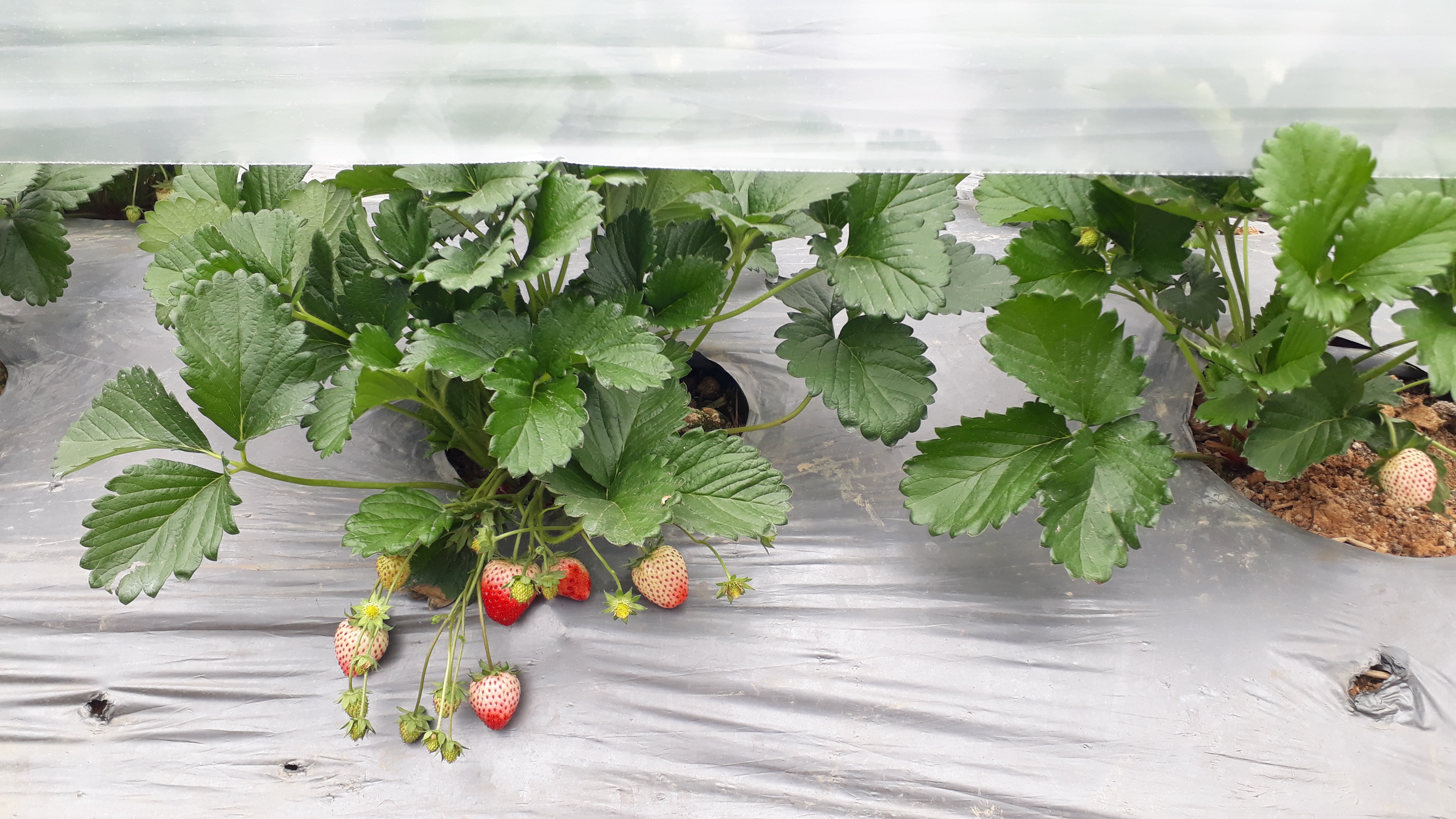 Vườn dâu tây nằm ngay ven đường thu hút mọi người dừng chân trải nghiệm.