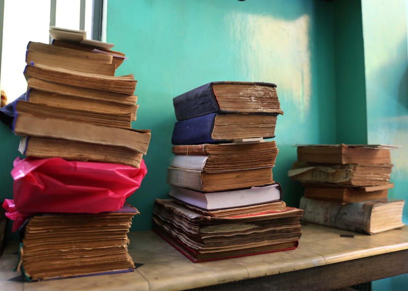 May sách nghe có vẻ hơi lạ nhưng đó thật sự là việc mà ông Rạng đang làm hàng ngày. Để giữ những trang sách đã quá cũ, ông bắt buộc phải may từng trang lại với nhau rồi mới dán gáy sách.