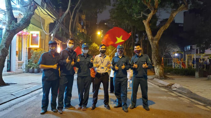Cán bộ phường Trúc Bạch tham gia phòng dịch.