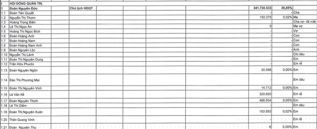Song, đáng chú ý nhất là vợ và các con ông (Đoàn Hoàng Anh, Đoàn Hoàng Nam và Đoàn Hoàng Nam Anh) không hề nắm giữ cổ phần nào ở HAGL.