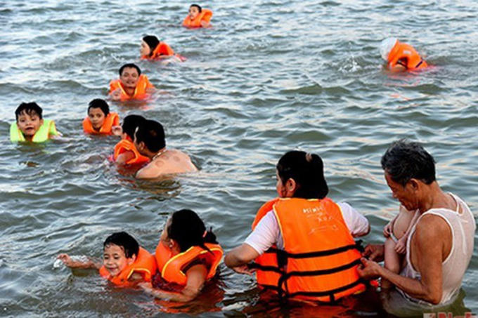 Những năm trở lại đây, vào mùa hè nắng nóng, cứ khoảng 16h hàng ngày, khu vực hạ nguồn sông Lam đoạn qua địa bàn phường Bến Thủy, TP. Vinh (tỉnh Nghệ An) trở thành bãi tắm giải nhiệt của nhiều người dân. Người già, người trẻ chen chúc, vùng vẫy trong làn nước. Người chưa biết bơi thì quanh quẩn gần bờ, nhiều “kình ngư” bơi ra giữa lòng sông, thậm chí bơi sang bờ bên kia.