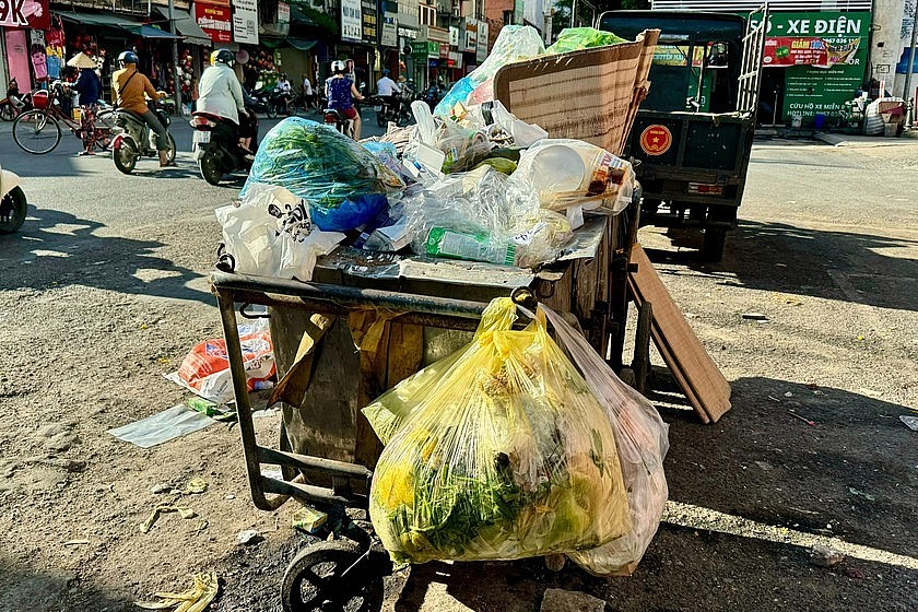 | Xe rác chất đầy rác thải thực phẩm không được phân loại. (Ảnh: PV) |