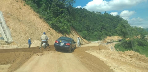 Tuy nhiên rất nhiều vị trí khác công trình vẫn đang ngổn ngang, công nhân vừa thi công vừa san gạt đất đá, cùng với đó là xuất hiện nhiều ổ gà, ổ voi và các khu vực thi công cầu cống được được nhà thầu đổ vật liệu khắp nơi mà không có bất kỳ cảnh báo nguy hiểm nào đối với người tham gia giao thông.