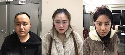 | Các đối tượng Nguyễn Lê Quân, Nguyễn Phương Anh, Đỗ Thu Hương khi bị bắt giữ. |