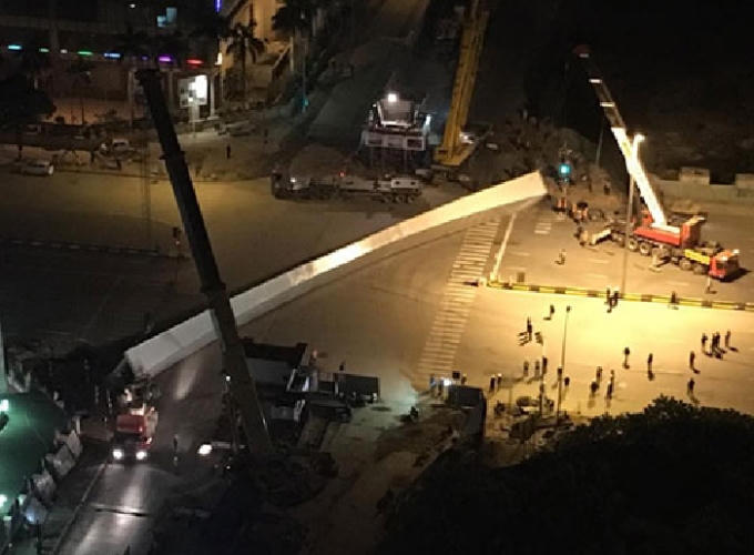 Trước đó, khoảng 0h ngày 11/3, tại cầu vượt Hoàng Minh Giám - Nguyễn Chánh (Hà Nội), dầm thép khổng lồ đang trong quá trình cẩu từ xe vận tải lên mố cầu thì bất ngờ rơi xuống, chắn ngang đường Trần Duy Hưng.