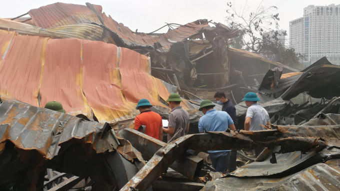Hiện trường vụ cháy nhà xưởng khiến 8 người chết và mất tích ở phường Trung Văn