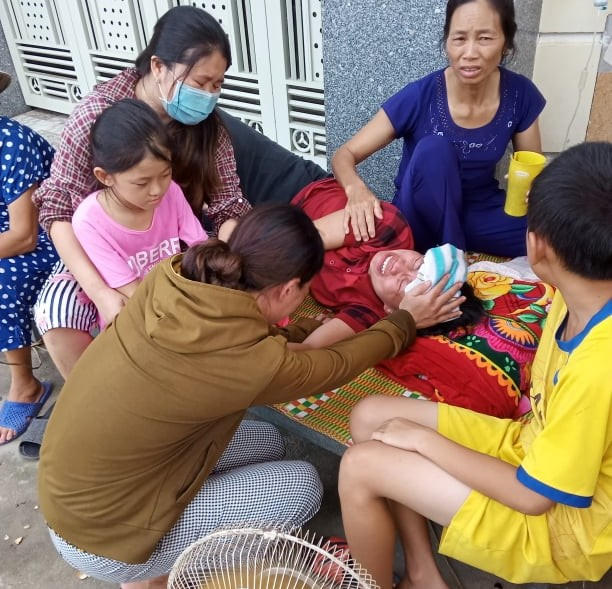 Chị Chung nằm trước nhà nguyên phó công an huyện yêu cầu hoàn trả lại toàn bộ số tiền.