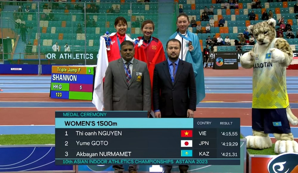 Tối 11/2, Nguyễn Thị Oanh bước vào tranh tài nội dung 1500m tại giải điền kinh trong nhà vô địch châu Á 2023 tổ chức tại Kazakhstan. Nữ VĐV của Việt Nam xuất phát ở đường chạy số 8, tranh tài cùng 7 vận động viên (VĐV) khác của Nhật Bản, Kazakhstan, Kuwait và Kyrgyzstan.