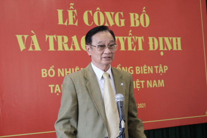Nhà báo Hồ Minh Chiến - Tổng Biên tập Tạp chí Gia đình Việt Nam ghi nhận sự phấn đấu, nỗ lực và đóng góp của nhà báo Hoàng Vững đối với sự phát triển của tòa soạn trong thời gian vừa qua.