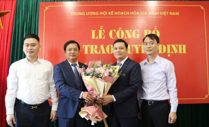 PGS. TS Phạm Bá Nhất - Chủ tịch Hội Kế hoạch hóa Gia đình Việt Nam trao quyết định bổ nhiệm chức vụ Phó Tổng biên tập Tạp chí Gia đình Việt Nam cho nhà báo Hoàng Vững.