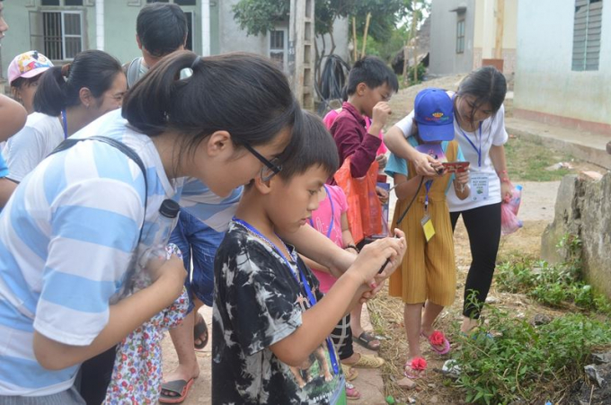 Các phóng viên nhí trục tiếp đi phỏng vấn người dân để viết bài