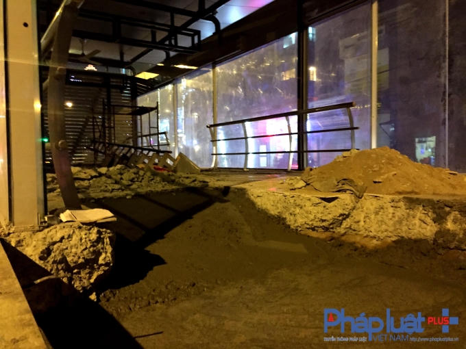 Do cửa lên xuống cao hơn với cửa xe nên các công nhân này đã phải hạ thấp phần cửa lên xuống của nhà chờ.