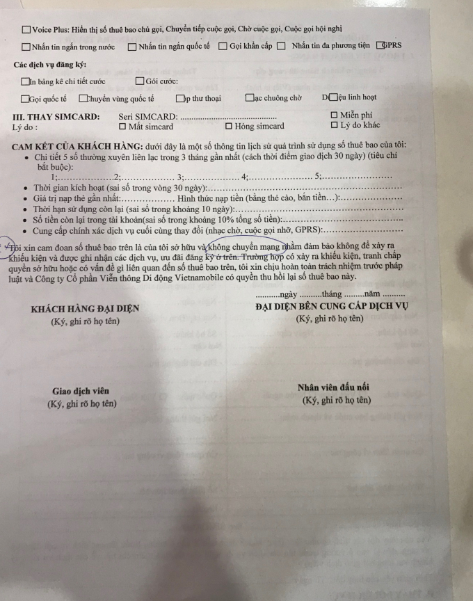 Khi được hỏi trước đó bên em không cho anh chuyển mạng với lý do là chưa đáp ứng cam kết. Vậy bây giờ anh đã làm đủ thủ tục theo yêu cầu thì đã chuyển mạng được chưa?. Thì nhân viên tên Trang tại điểm giao dịch của Vietnamobile thẳng thắn trả lời: “Những lý do trước đó, mà bên em đưa ra thực ra chỉ là cái cớ để ngăn không cho số thuê bao chuyển mạng giữ số mà thôi chứ chẳng có phải là liên quan đến cam kết gì cả.