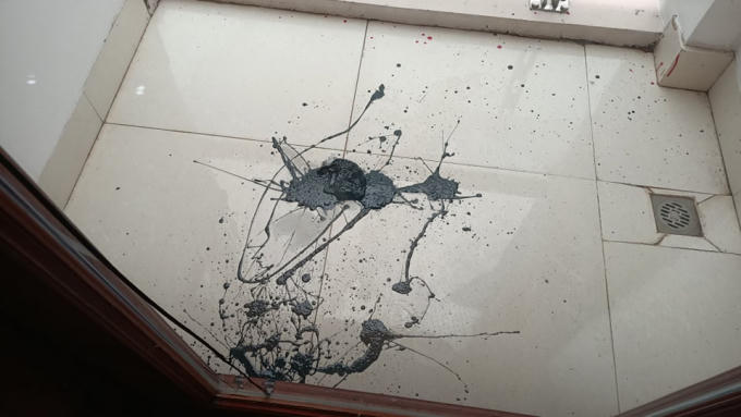 Chất bẩn mắm tôm, dầu nhớt bị các đối tượng bịt mặt ném thẳng vào nhà.