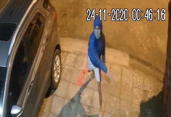 Đối tượng bịt mặt ném chất bẩn vào nhà phóng viên. (Ảnh cắt từ clip)