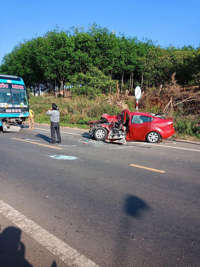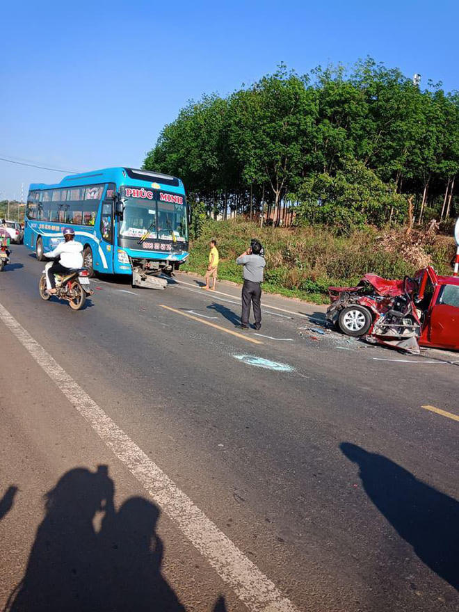 Gặp tình huống bất ngờ tài xế xe khách vội bấm còi inh ỏi, đánh lái lách sang trái để tránh ô tô 4 chỗ, tuy nhiên cùng lúc xe 4 chỗ này cũng lách sang cùng chiều khiến 2 xe va chạm trực diện vào nhau rất mạnh, nhiều mảnh vỡ văng lên tung tóe.