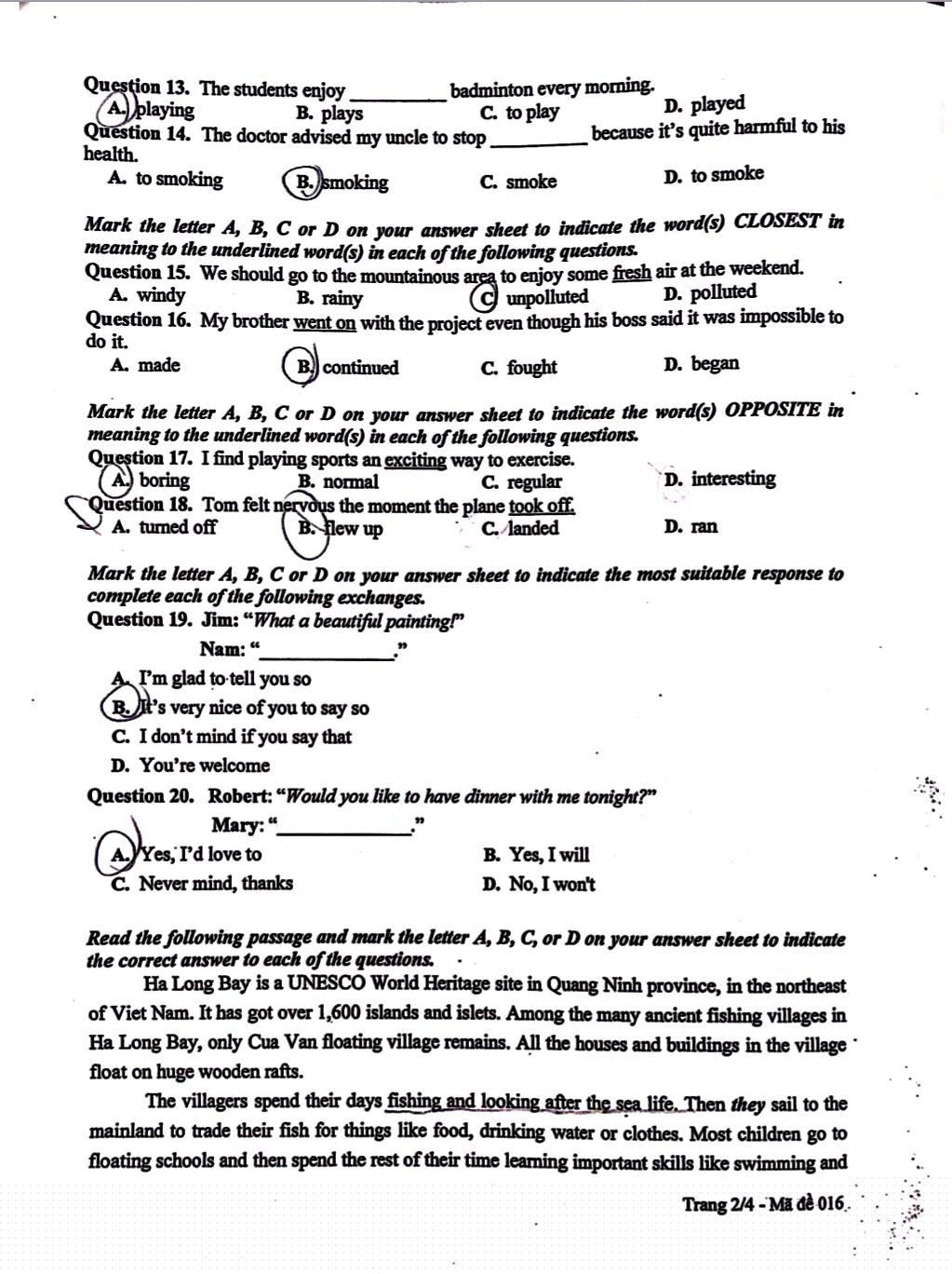 Về cấu trúc: Đề thi có cấu trúc tương tự đề thi năm 2019 với 40 câu, gồm 9 dạng bài quen thuộc: Phát âm, trọng âm, hoàn thành câu, tìm lỗi sai, tìm từ đồng nghĩa-trái nghĩa, điền từ, đọc hiểu và tìm câu đồng nghĩa.