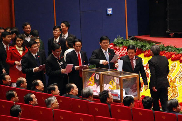 Đại biểu dự Đại hội Đảng 12 bỏ phiếu ngày 26/1/2016. Ảnh: Phạm Hải