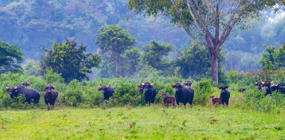 | Một đàn Bò Tót tại Vườn Quốc gia Cát Tiên. Ảnh: VQG Cát Tiên |