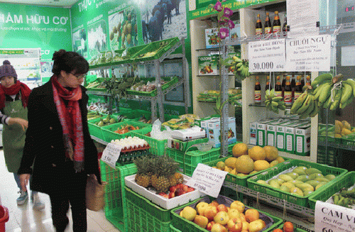Tại nhiều cửa hàng, siêu thị trên các tuyến phố Hà Nội như: Trần Thái Tông, Hoàng Đạo Thúy, Thái Hà, Nguyễn Trãi…sản phẩm rau cải ngọt, rau dền, mồng tơi 32.000 đồng/kg, mướp Nhật 70.000 đồng/kg, thịt lợn từ 200.000 - 300.000 đồng/kg, thịt gà 230.000 đồng/kg, sữa đậu nành cho bé loại 900g giá 480.000 đồng, rau sống được trải qua 36 quy trình, người mua có thể bày ra đĩa ăn luôn…