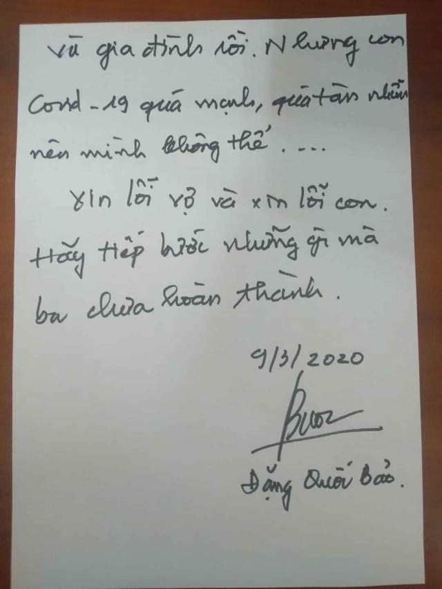Xin lỗi vợ và xin lỗi con. Hãy tiếp bước những gì ba chưa hoàn thành”.