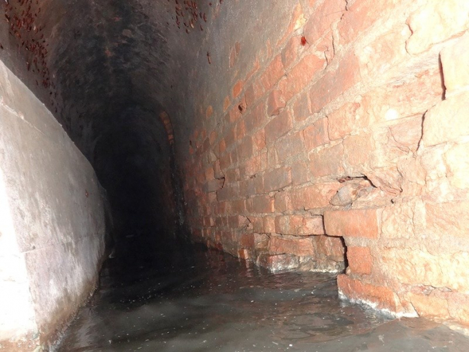 | Cống vòm ở đường Hai Bà Trưng được xây bằng gạch nung. Theo Trung tâm Chống ngập, tuyến cống này đã tồn tại khoảng 50 năm. Ảnh: TTCN |