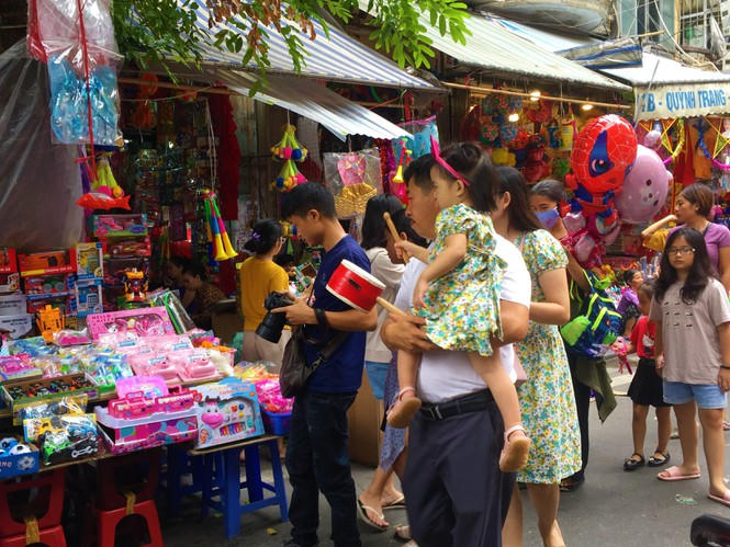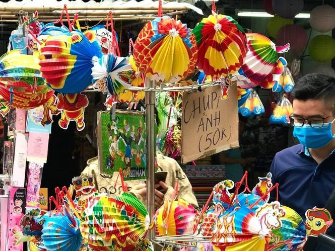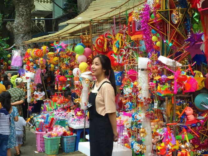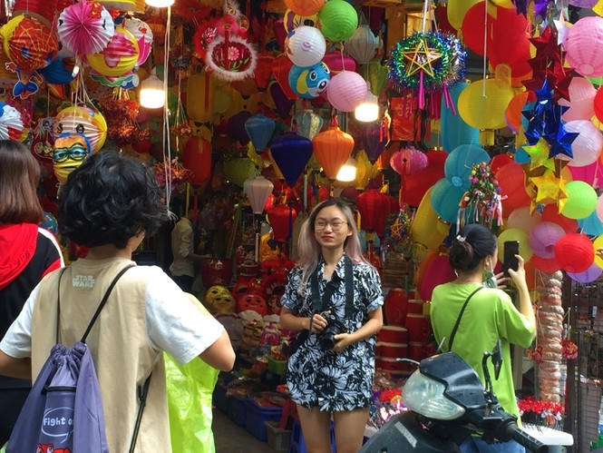 Nhiều gia đình cũng tranh thủ ngày cuối tuần, đưa con nhỏ lên phối mua sắm chuẩn bị và tận hưởng không khí nhộn nhịp của tết Trung thu .