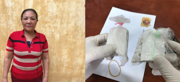 Đối tượng Nguyễn Thị Hoa cùng tang vật. (Ảnh: báo Bắc Giang)