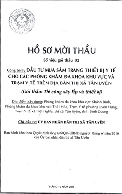 Cụ thể, trong HSMT gói thầu “Đầu tư mua sắm trang thiết bị Y tế cho các Phòng khám đa khoa khu vực và Trạm Y tế trên địa bàn thị xã Tân Uyên” của Ban Quản lý dự án thị xã Tân Uyên, thời gian bán HSMT là ngày 16/11/2016 và thời gian đóng thầu là ngày 28/11/2016. Sau khi nghiên cứu HSMT của gói thầu này, những đơn vị mua HSMT đã phát hiện ra HSMT này có nhiều vi phạm đi ngược lại với quy định trong pháp luật đấu thầu, vi phạm nghiêm trọng Thông tư 05 của Bộ KH-ĐT.