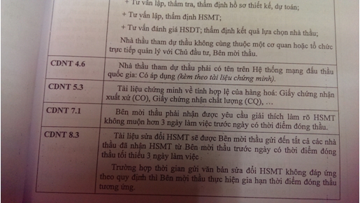 Trường hợp có chỉnh sửa các quy định nêu trong Mẫu hồ sơ mời thầu thì tổ chức, cá nhân thực hiện việc lập, thẩm định, phê duyệt hồ sơ mời thầu phải bảo đảm việc chỉnh sửa đó là phù hợp, khoa học, chặt chẽ hơn so với quy định nêu trong Mẫu hồ sơ mời thầu và không trái với quy định của pháp luật về đấu thầu. Trong tờ trình đề nghị phê duyệt hồ sơ mời thầu phải nêu rõ các nội dung chỉnh sửa so với quy định trong Mẫu hồ sơ mời thầu và lý do chỉnh sửa để chủ đầu tư xem xét, quyết định.” Thế nhưng trong hồ sơ mời thầu gói thầu nêu trên chủ đầu tư đã cắt bỏ mục CDNT 4.73.