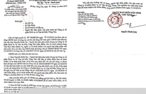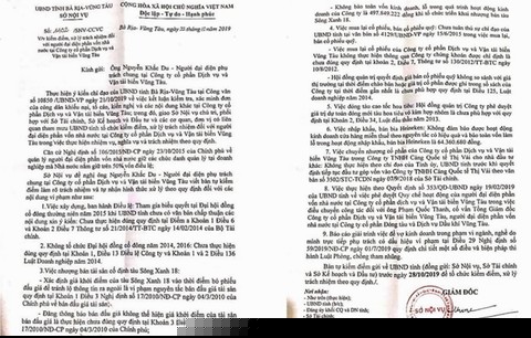 Tiếp đó, ngày 12-12-2019, UBND tỉnh Bà Rịa – Vũng Tàu có công văn số 13003/UBND-VP lần thứ 2 yêu cầu Sở Nội vụ chủ trì, phối hợp với các cơ quan liên quan tham mưu UBND tỉnh tổ chức kiểm điểm, xử lý trách nhiệm đối với người đại diện phần vốn Nhà nước tại Công ty Vungtau Ship theo đúng quy định.