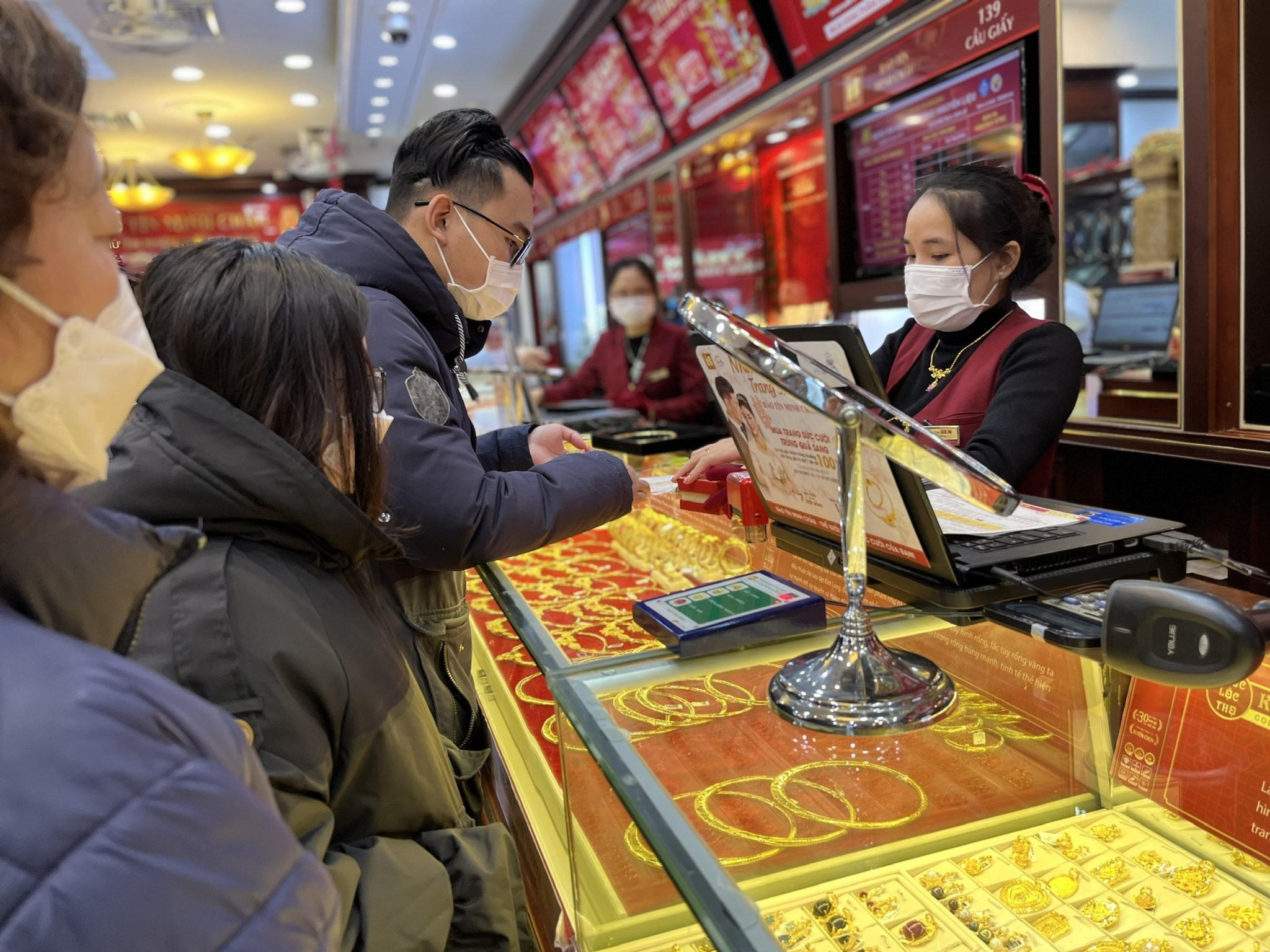 Nhiều tiệm vàng ở Hà Nội thông báo hết vàng SJC vào chiều ngày mùng 6 Tết và hẹn khách quay lại vào ngày mùng 10 tháng Giêng (ngày vía Thần tài).