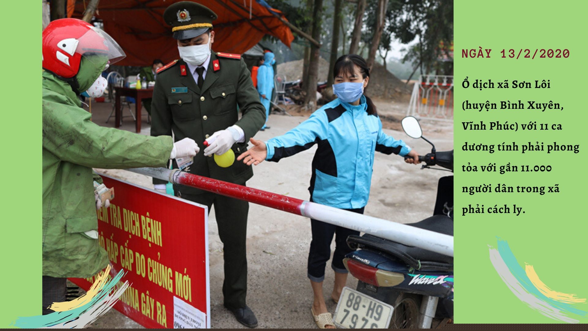 Ngày 13/2, ổ dịch xã Sơn Lôi (huyện Bình Xuyên, Vĩnh Phúc) với 11 ca dương tính phải phong tỏa với gần 11.000 người dân trong xã phải cách ly.