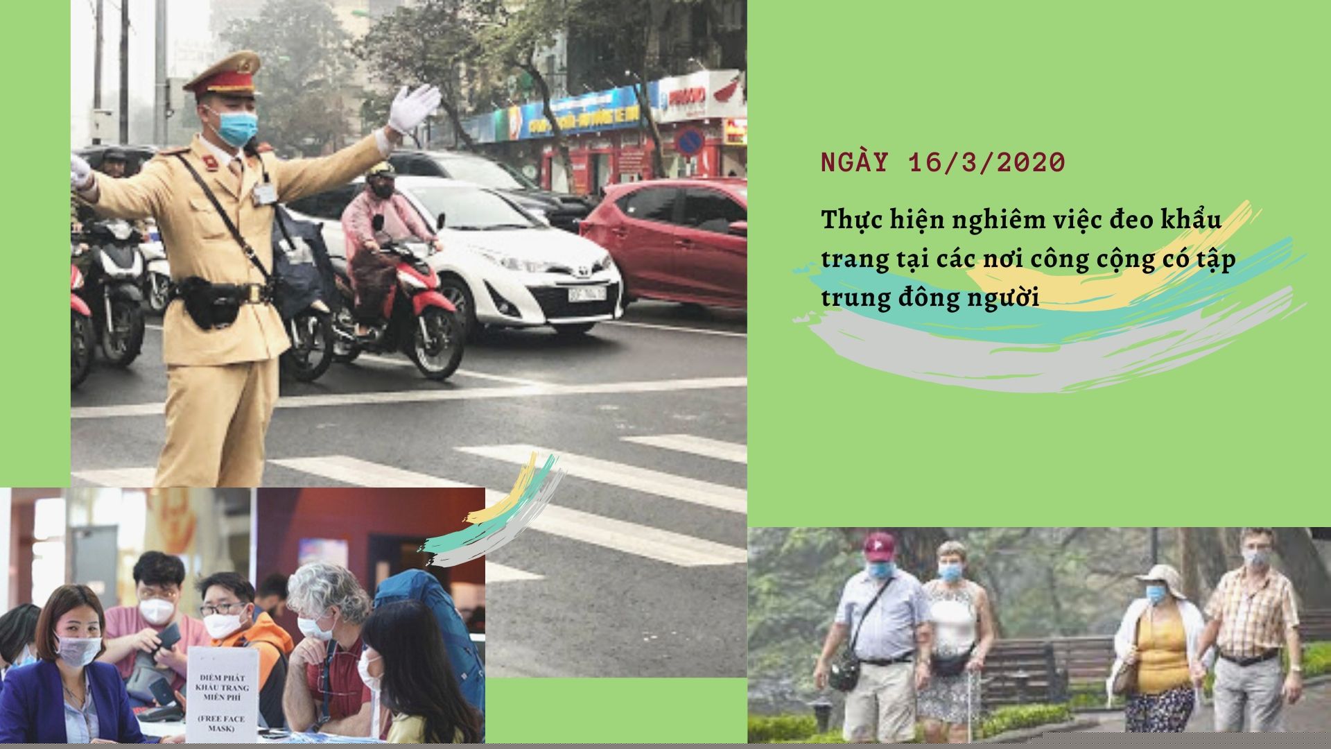 Từ ngày 16/3/2020, thực hiện nghiêm việc đeo khẩu trang tại các nơi công cộng có tập trung đông người (như tại siêu thị, sân bay, nhà ga, bến xe, trên các phương tiện giao thông công cộng...);