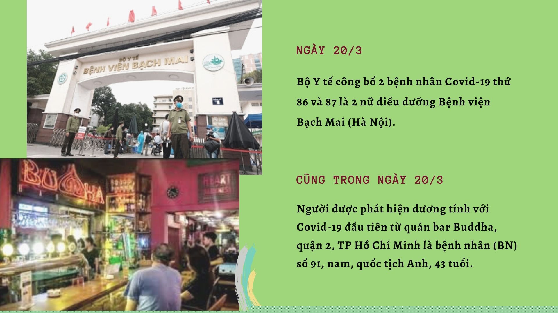 Cũng ngày 20/3, khi ở Hà Nội xuất hiện ổ dịch Bệnh viện Bạch Mai, ở TP Hồ Chí Minh, bệnh nhân số 91 được công bố (nam, quốc tịch Anh, 43 tuổi), mở đầu cho sự xuất hiện ổ dịch lớn nhất phía Nam - ổ dịch quán bar Buddha, quận 2, TP Hồ Chí Minh.