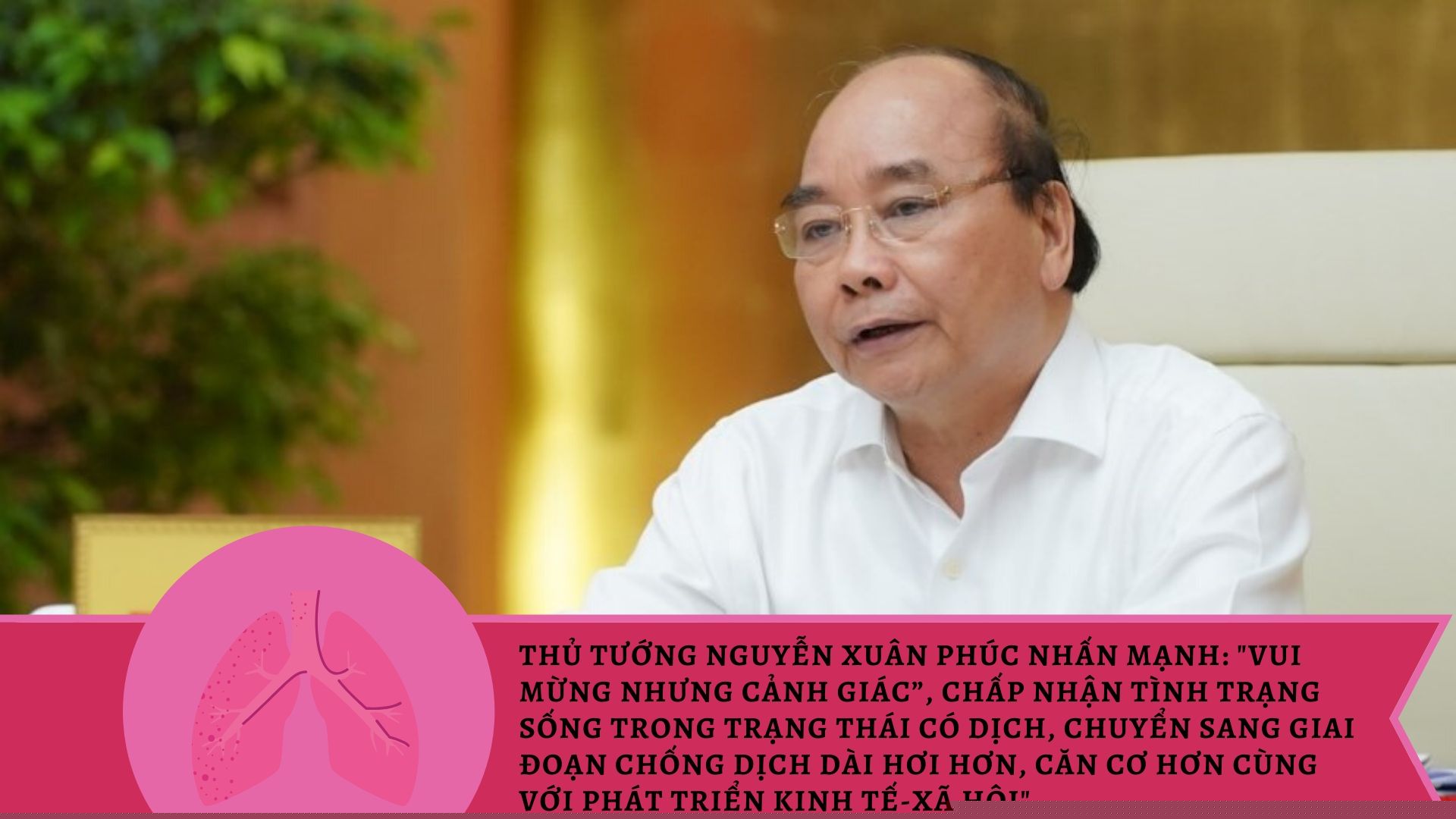 Thủ tướng Nguyễn Xuân Phúc nhấn mạnh: "Vui mừng nhưng cảnh giác”, chấp nhận tình trạng sống trong trạng thái có dịch, chuyển sang giai đoạn chống dịch dài hơi hơn, căn cơ hơn cùng với phát triển kinh tế-xã hội".