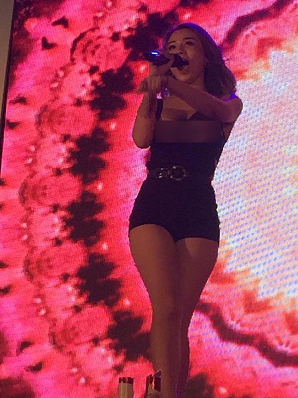 Ở sự kiện tại Hạ Long (Quảng Ninh) vừa qua, Linh Miu đã khiến nhiều người chú ý bởi bộ trang phục hai dây, cắt cúp nhiều chỗ, đặc biệt là ở phần ngực của cô. Điều đáng nói là hết tiết mục, Linh Miu mới kéo áo lên che chắn vòng một.