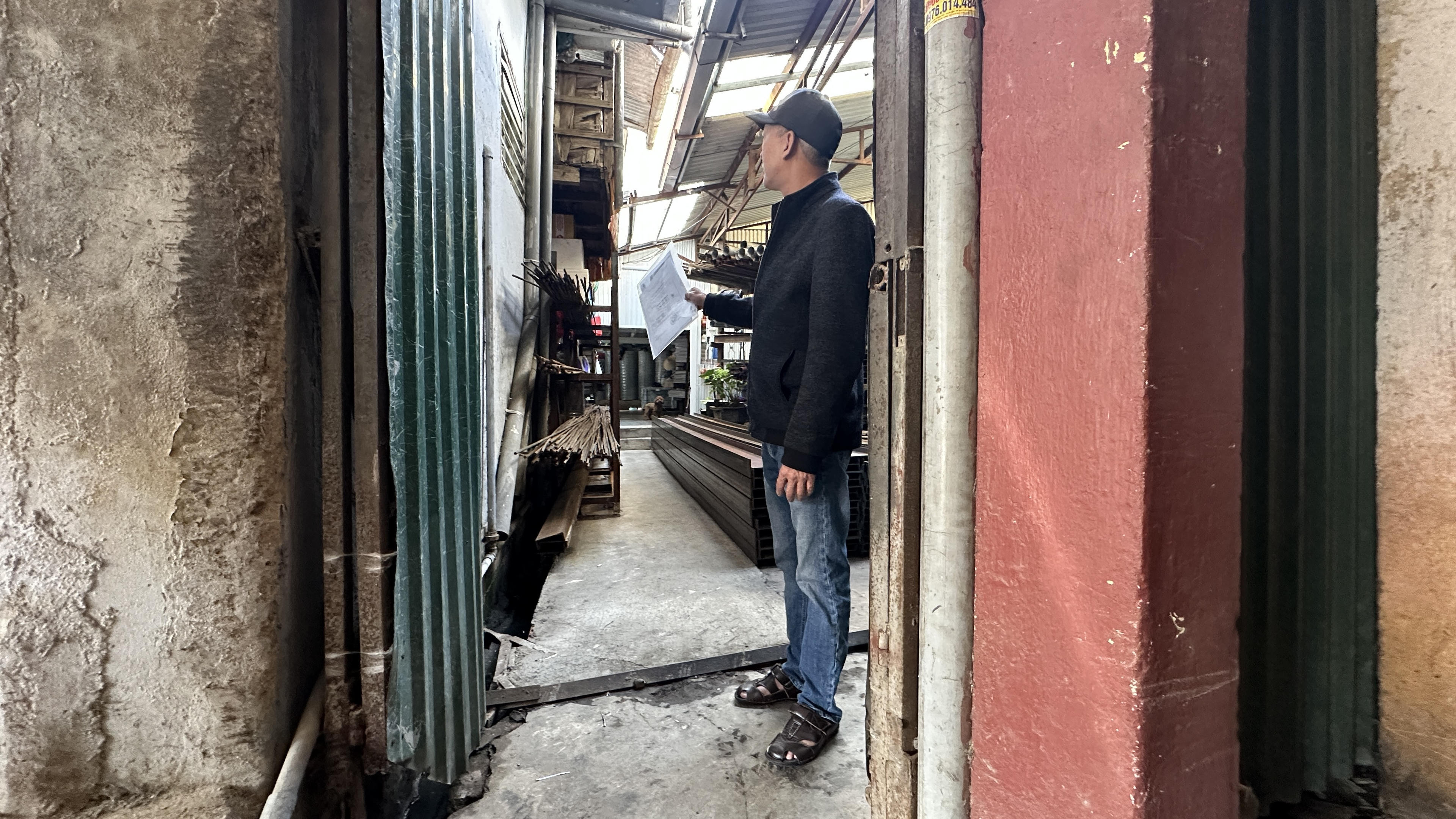 Con đường hẻm nhiều hộ dâ sử dụng suốt hơn 20 bỗng dưng bị lấn chiếm, xây dựng nhà kho chứa sắt thép.