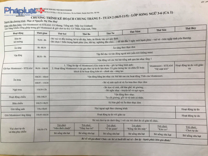 Chương trình học của cơ sở mầm non Hà Nội Montessori.