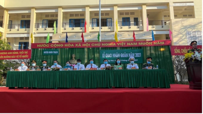 Ngày 3/3 tại trường THPT Nguyễn Bỉnh Khiêm, Hội đồng nghĩa vụ quân sự huyện Nhơn Trạch (Đồng Nai) đã phối hợp với các ban ngành, đoàn thể và các địa phương tổ chức Lễ giao nhận quân năm 2021.