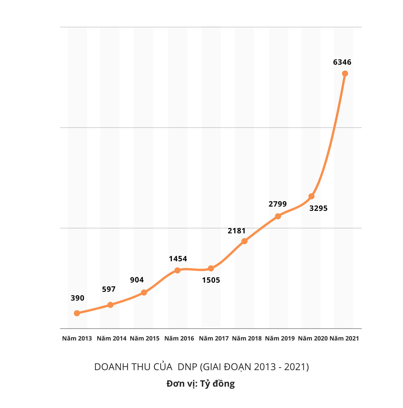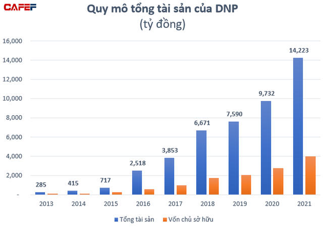 Tài sản tăng mạnh nhưng nợ cũng lên nhanh, không chỉ thế, DNP còn ghi nhận sự tăng trưởng không đồng đều giữa doanh thu và lợi nhuận. Cụ thể, doanh thu thuần của công ty cũng tăng 9,6 lần trong giai đoạn 2014 - 2021, từ 597 tỷ đồng lên 6.346 tỷ đồng. Doanh thu thuần năm 2021 tăng 92,6% so với năm 2020.