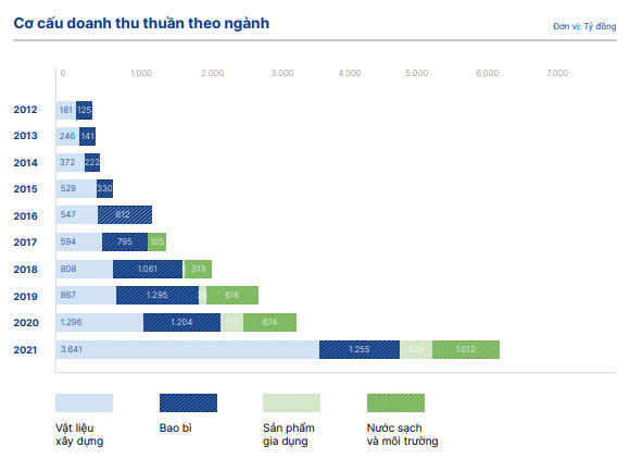 Doanh thu nước sạch năm 2021 của DNP Water là 1.012 tỷ đồng. Chỉ sau 5 năm, doanh thu mảng nước sạch và vệ sinh môi trường đã tăng trưởng gấp 10 lần so với năm 2017 và chiếm tỷ trọng lớn dần trong số 4 lĩnh vực kinh doanh của DNP nói chung.