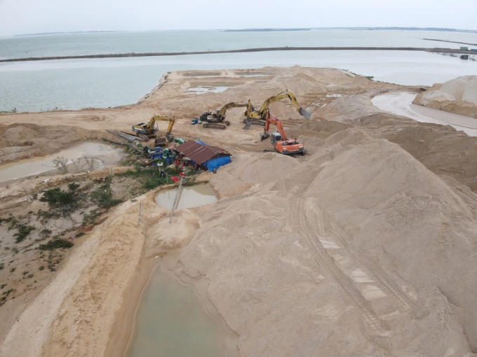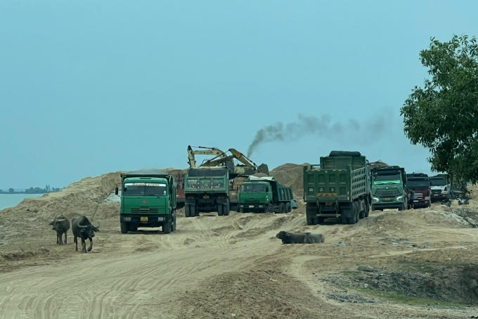 Chưa kể, những công ty, doanh nghiệp khi khai thác phải cách bờ chắn sóng 500m và cách đập chính là 1km. Tuy nhiên, những hình ảnh chúng tôi dễ dàng ghi lại cho thấy, từ bờ đập, người ta tạo ra một con đường dài chưa tới 100 mét nối thẳng ra bãi tập kết cát. Ở đó, nhiều tàu vỏ thép công suất lớn chỉ việc thọc vòi xuống lòng hồ hút cát lên bãi. Bên trên, hàng chục xe cuốc, xe ben hoạt động hết công suất để làm giàu cho chủ mỏ.