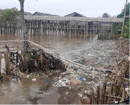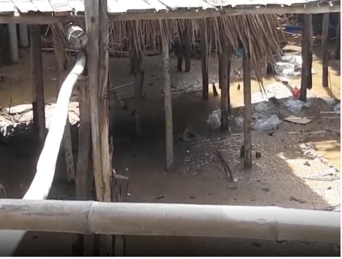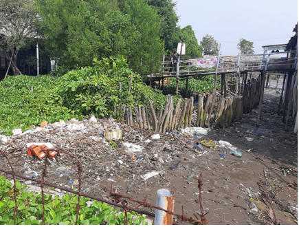Vị trí hiện tại của các nhà sàn gần như tách biệt với đất liền và chỉ được nối vào bờ bằng cầu gỗ. Không chỉ chưa có nhà vệ sinh và hệ thống xử lý chất thải theo đúng quy định, các quán ăn này càng không có hướng dẫn cụ thể khách hàng điểm tập kết, vứt bỏ. Rác sinh hoạt, nấu nướng, chất thải từ nhà vệ sinh gần như được các nhà sàn thải trực tiếp xuống biển, bên cạnh các tấm lưới chắn.