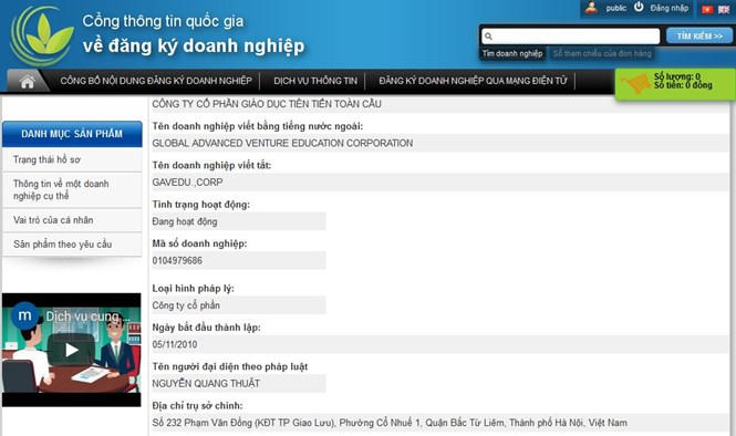 Công ty Cổ phần Giáo dục Tiên tiến Toàn Cầu có trụ sở chính tại 232 Phạm Văn Đồng, phường Cổ Nhuế 1, Quận Bắc Từ Liêm, thành phố Hà Nội do ông Nguyễn Quang Thuật làm người đại diện pháp luật.