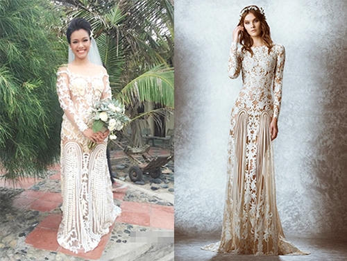 Trong số các mỹ nhân mặc váy nhái, chịu nhiều áp lực nhất có lẽ là Phương Vy. Trang phục cưới của cô mặc vào tháng 3 có nhiều nét tương đồng với váy cưới của thương hiệu nổi tiếng Zuhair Murad. Tuy nhiên, chiếc váy bị cho là phiên bản copy bị lỗi vì không hợp với chiều cao khiêm tốn, thân hình hơi tròn và nước da ngăm đen của cô. Nhiều người cho rằng Phương Vy đã tự "dìm" bản thân trong ngày trọng đại.