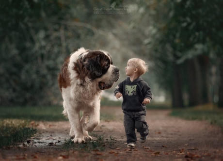 Những bức ảnh dễ thương về "Em bé và những chú chó lớn"