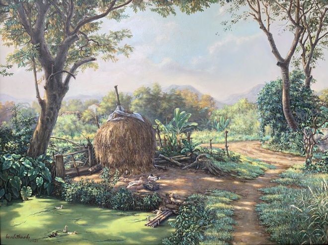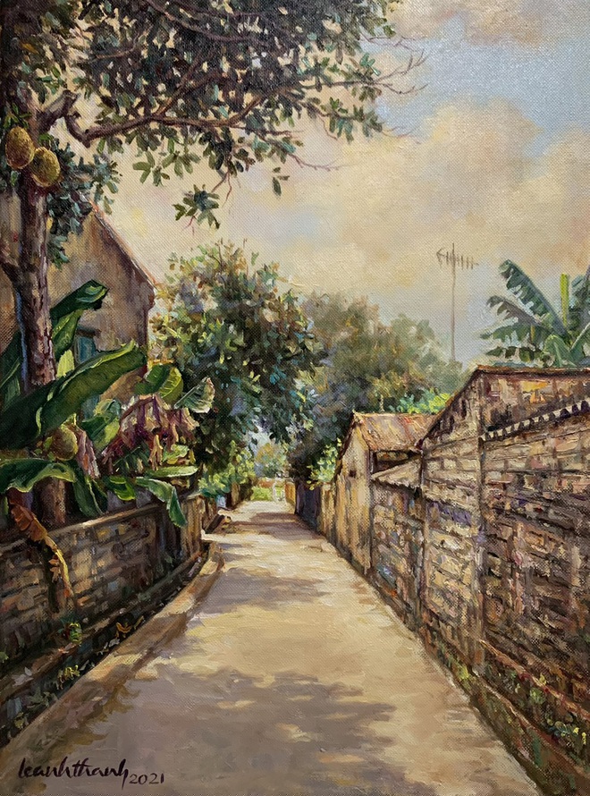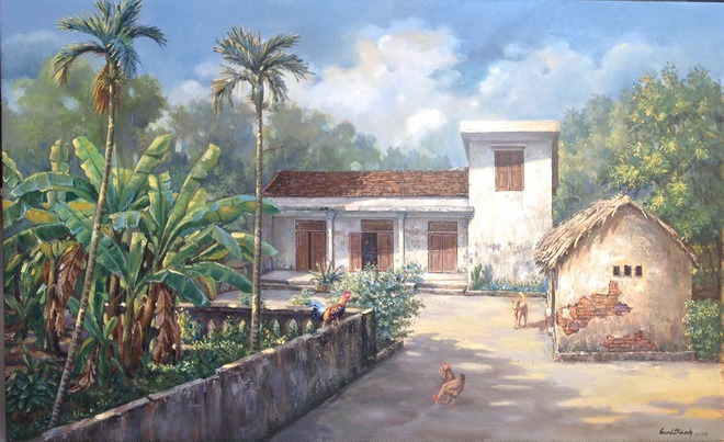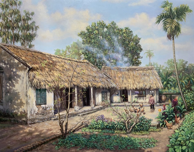 Làng quê mộc mạc, mái ngói cũ kỹ, cảnh sinh hoạt thân thương,… Tất cả những thứ rất thân quen ấy được họa sĩ 7X xuyên không gian khắc họa vào những bức tranh khiến bao người rưng rưng khi nhớ về.