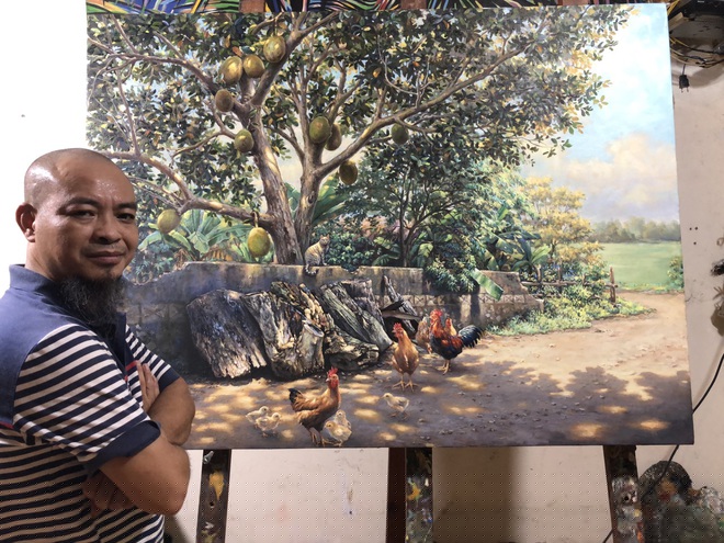 Tranh của anh Thanh được thực hiện bằng chất liệu sơn dầu (Ảnh: Lê Anh Thanh)